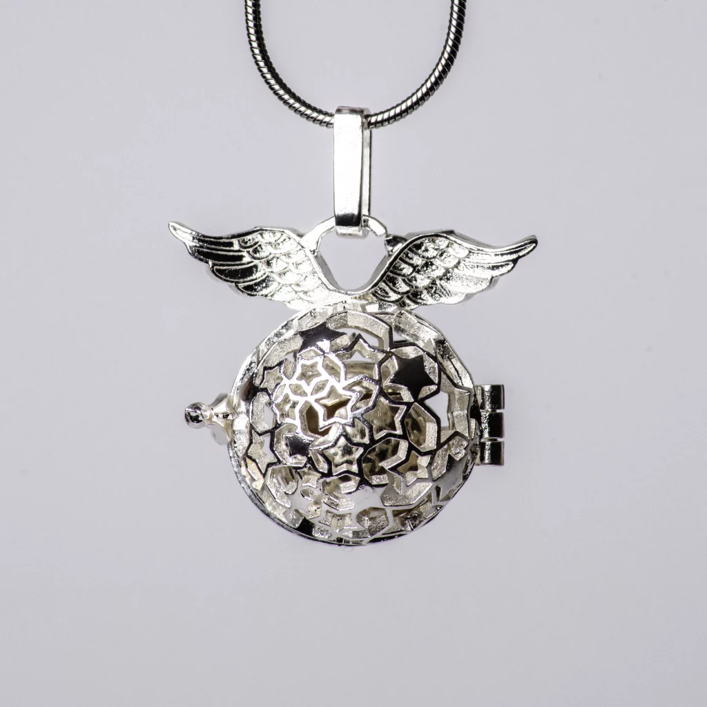 Un llamador de ángeles es un colgante con una esfera metálica que emite un suave tintineo, atrae la protección y guía de los ángeles guardianes.