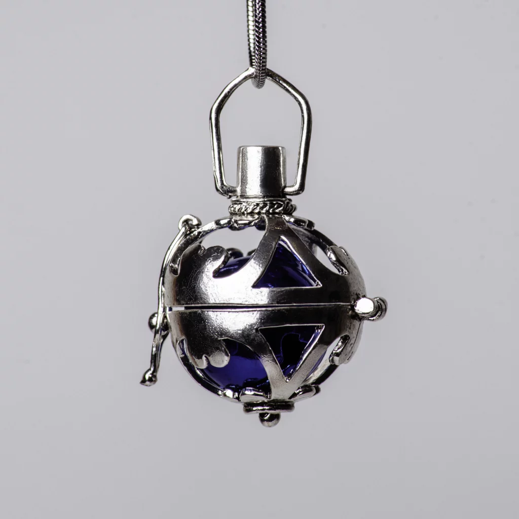 Contiene una pequeña bola que, al moverse, produce un sonido suave pensado para atraer a los ángeles guardianes y ofrecer protección.